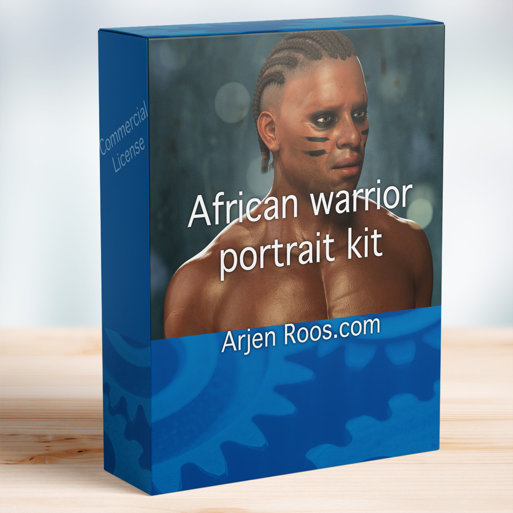 This kit contains a portrait of an African warrior in seven different lights. All images are a whopping high resolution of 6000 x 6000 pixels with a transparant background ready to be used in your own artwork.